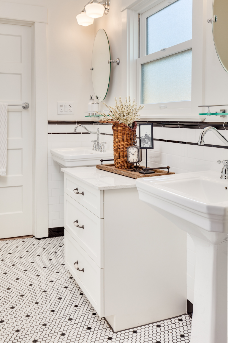 One of the key aspects of farmhouse style is using natural materials, so try incorporating reclaimed wood into your design. Exposed beams or distressed barn wood walls can add instant character to the room. Another farmhouse staple is black and white checkerboard flooring—it’s classic and timeless.