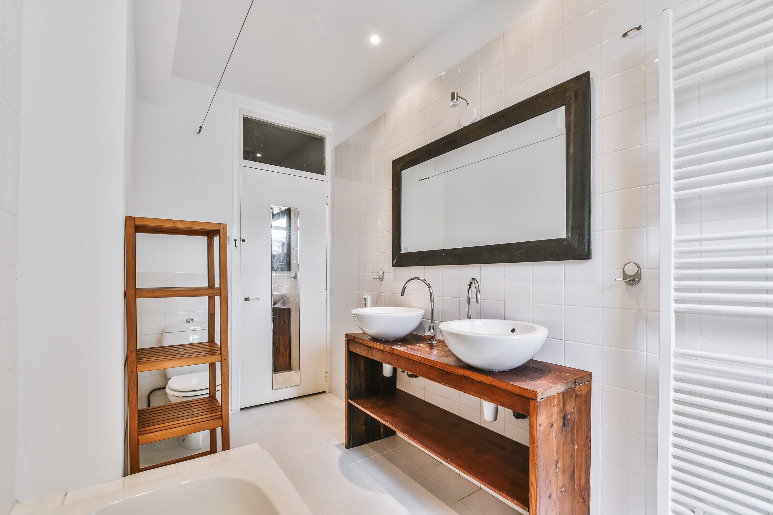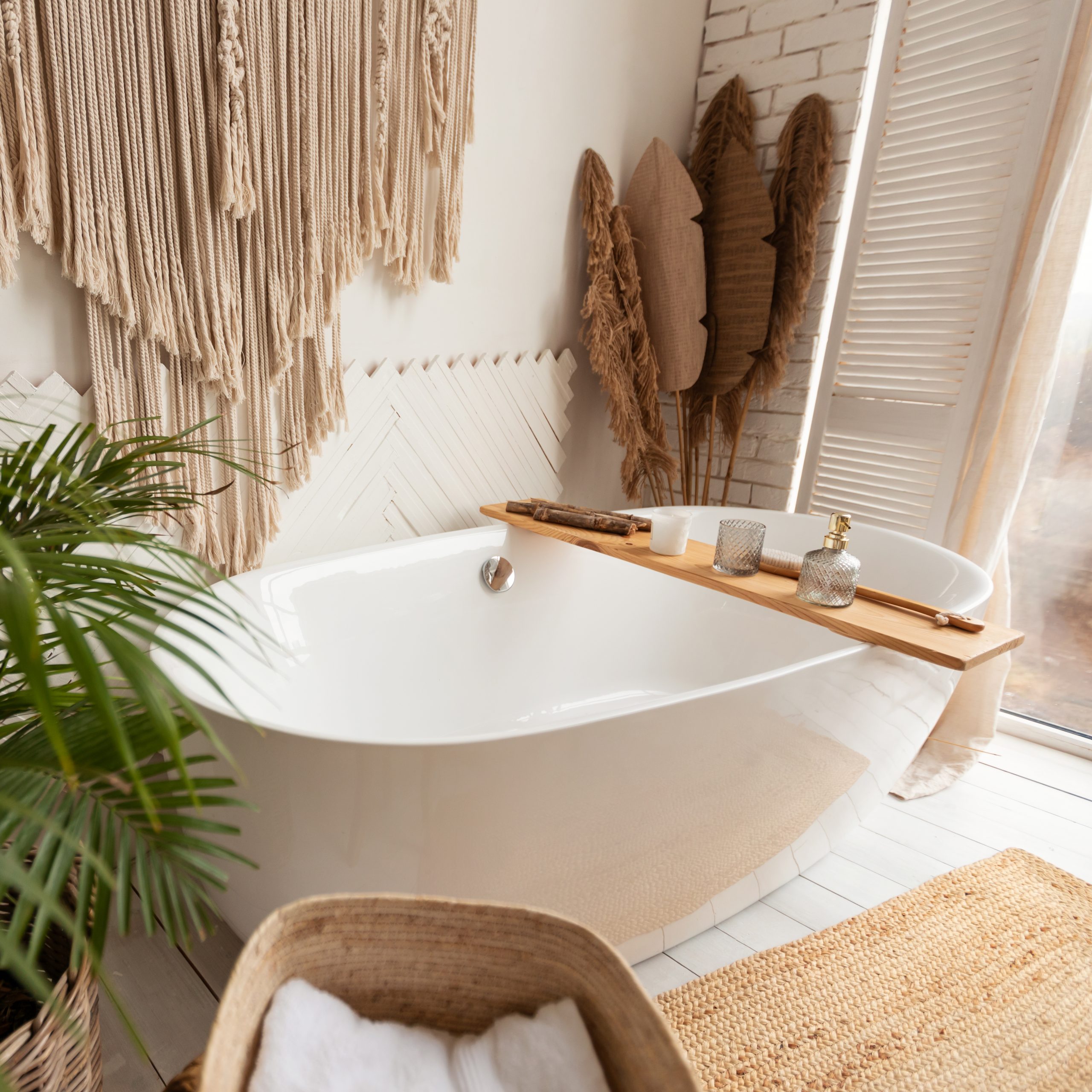 Next, choose a neutral color palette. Farmhouse bathrooms typically feature a light and airy color scheme. Stick to colors like white, cream, and light blue for a classic look. Or, crank up the warmth with light browns, tans, or greens. And the more light you can let in, the better—if you have large windows in your bathroom, that’s a great start, but consider an interior transom window over your bathroom door to allow even more light in while still maintaining the room’s privacy.